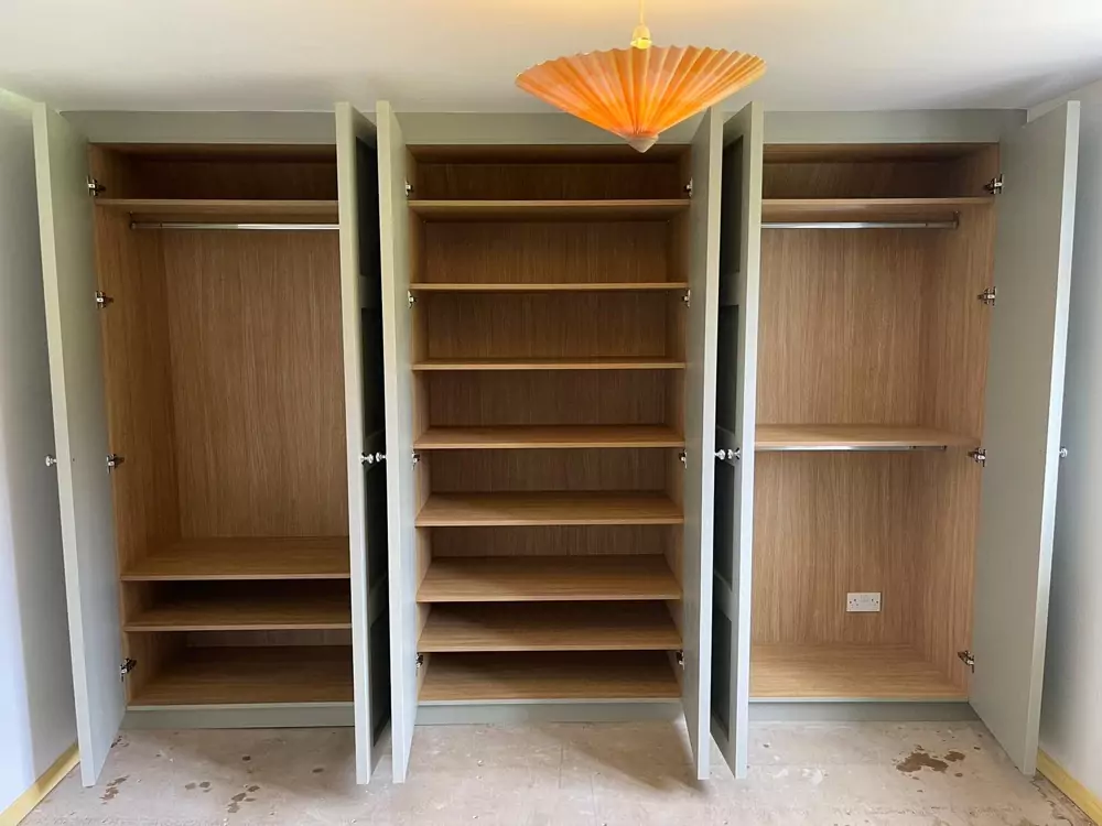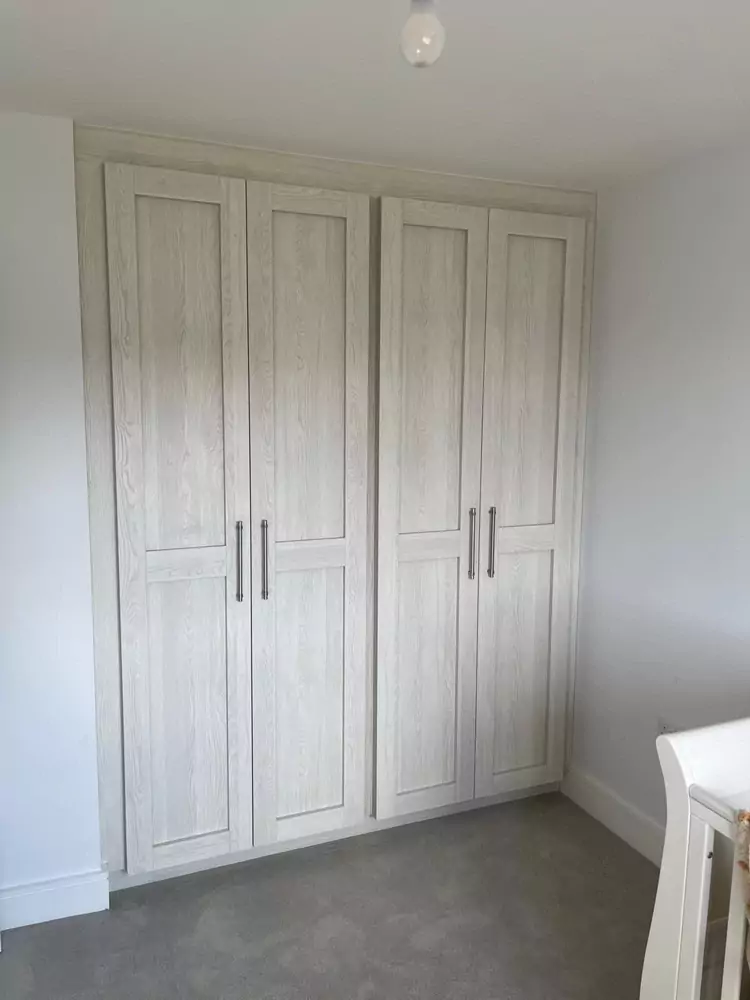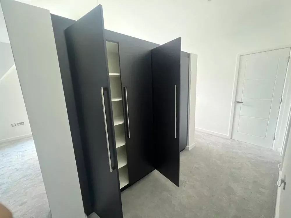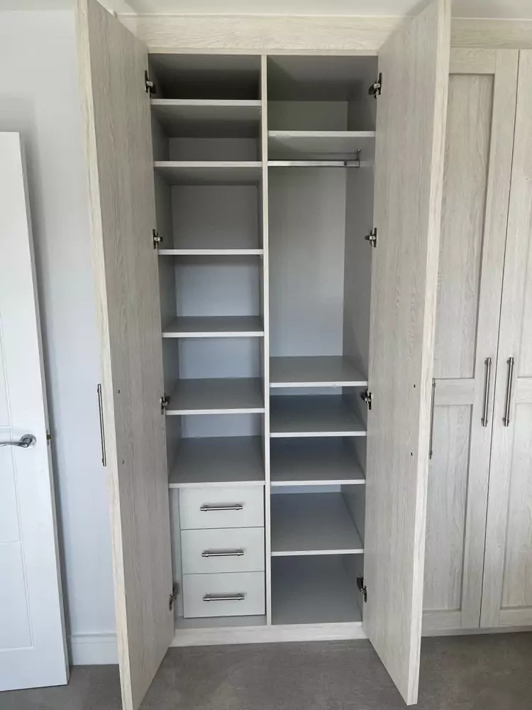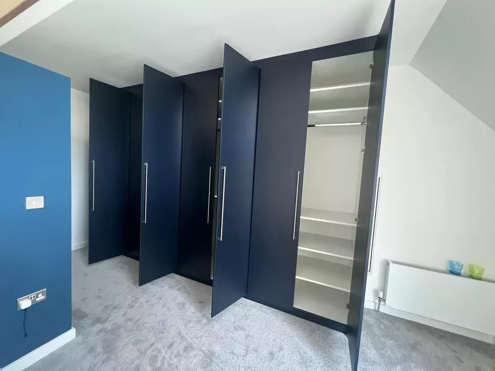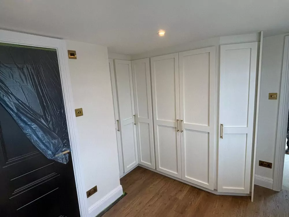 Hinged wardrobes provide a timeless and adaptable storage solution, blending style with practicality. At Kent Wardrobes, each bespoke hinged door wardrobe is custom-designed to fit your space precisely, eliminating wasted areas. Crafted to harmonize with your room’s layout, our fitted wardrobes maximize storage capacity while adding an elegant finish to your home. Unlike freestanding units, our made-to-measure wardrobes offer seamless integration and exceptional craftsmanship.