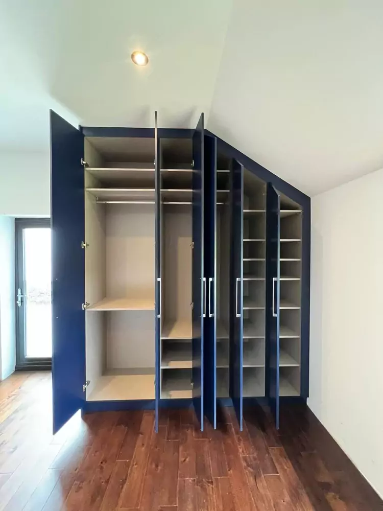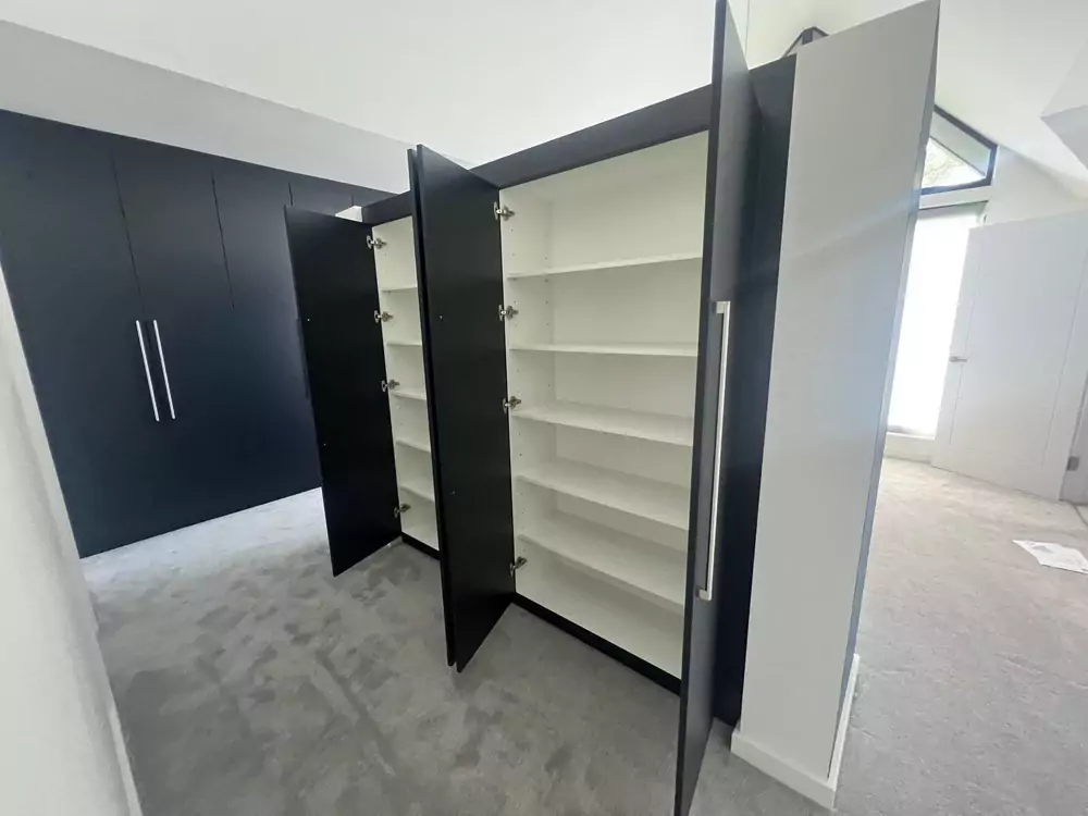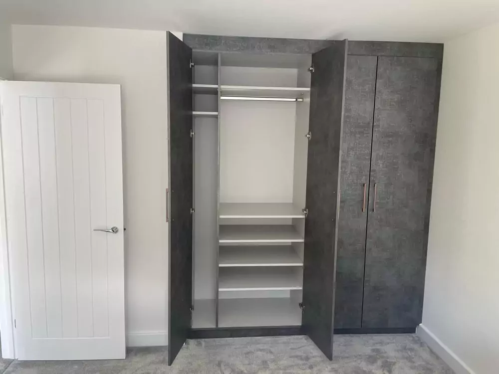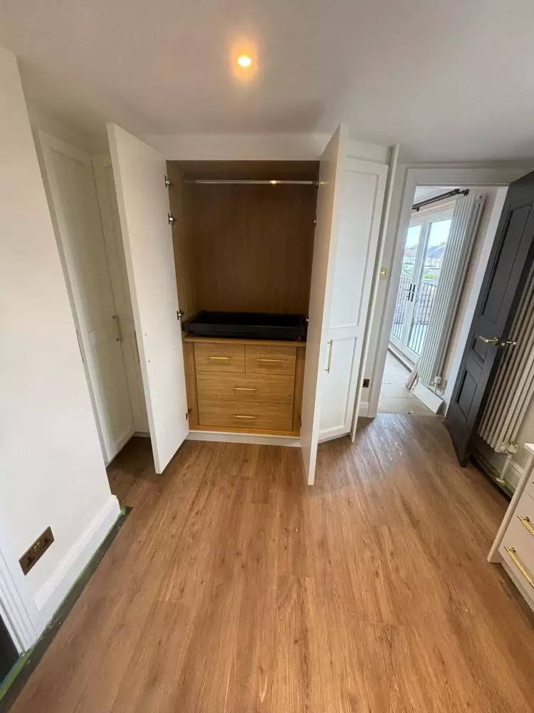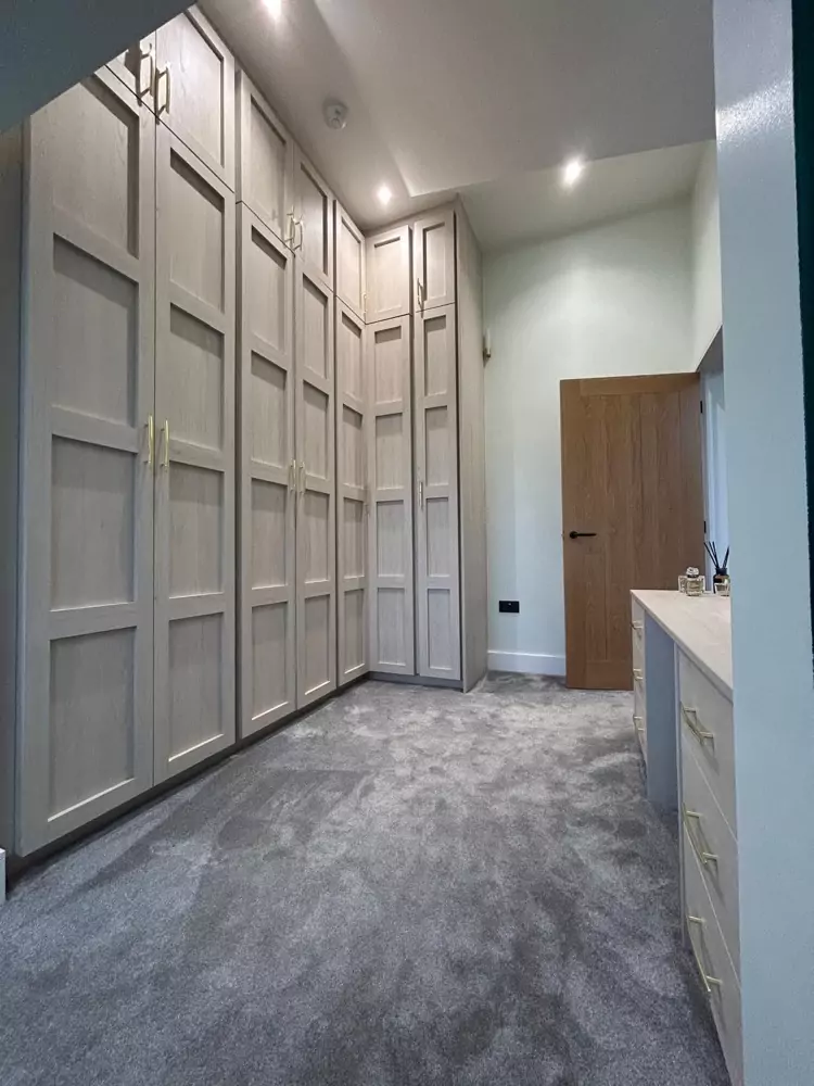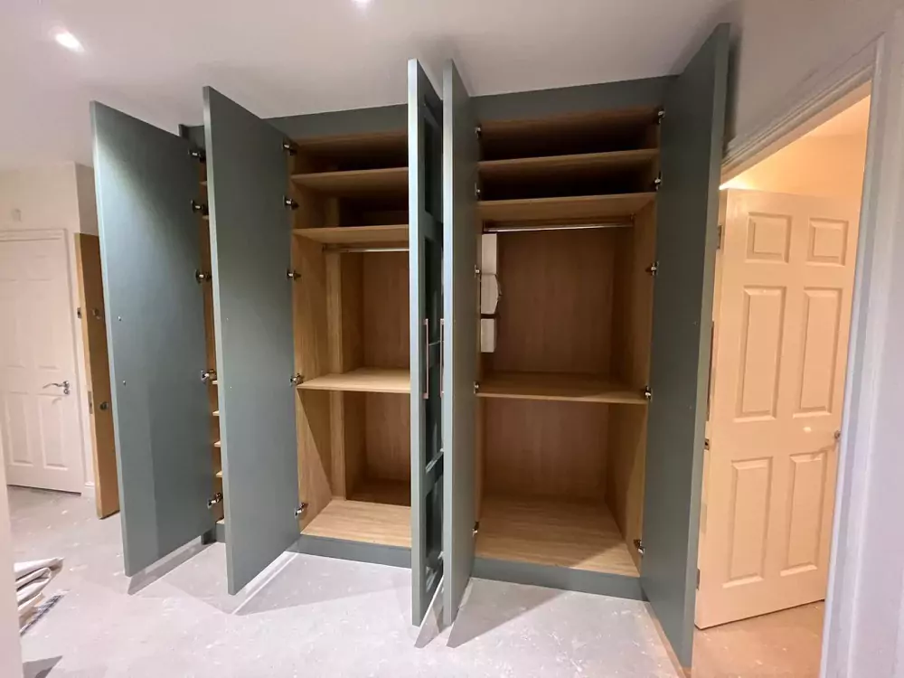 Hinged wardrobes provide a timeless and adaptable storage solution, blending style with practicality. At Kent Wardrobes, each bespoke hinged door wardrobe is custom-designed to fit your space precisely, eliminating wasted areas. Crafted to harmonize with your room’s layout, our fitted wardrobes maximize storage capacity while adding an elegant finish to your home. Unlike freestanding units, our made-to-measure wardrobes offer seamless integration and exceptional craftsmanship.