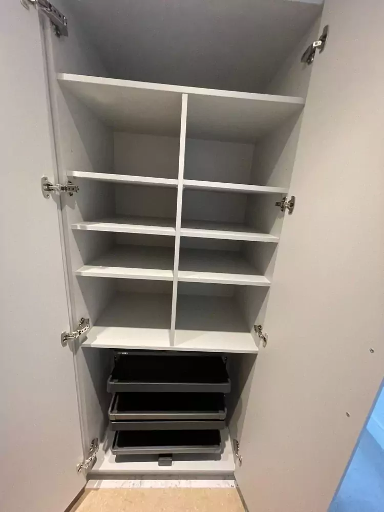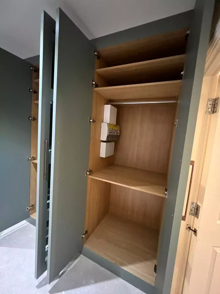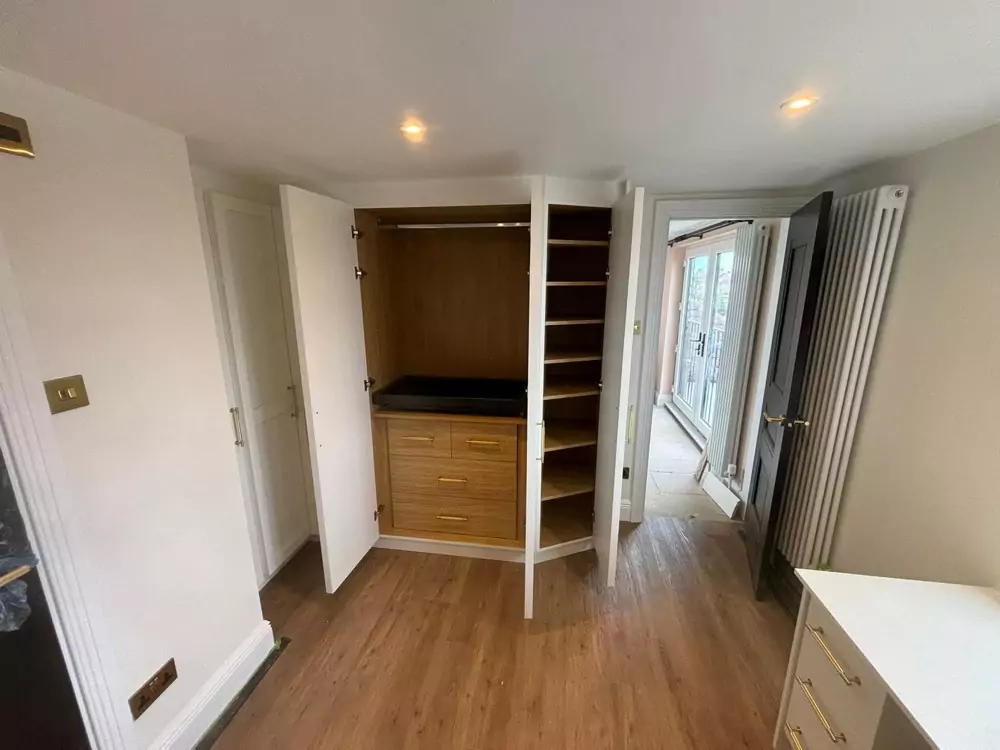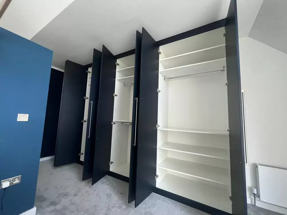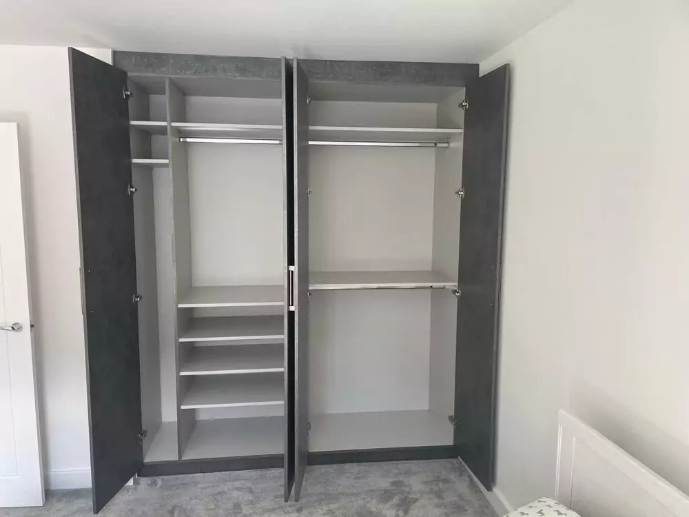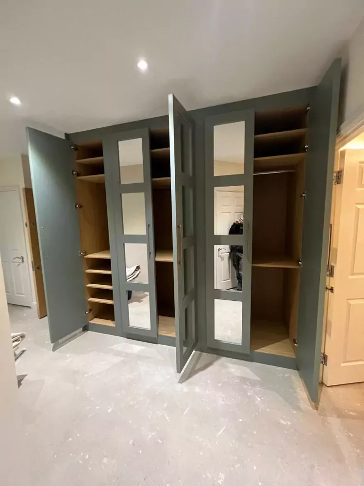 Hinged wardrobes provide a timeless and adaptable storage solution, blending style with practicality. At Kent Wardrobes, each bespoke hinged door wardrobe is custom-designed to fit your space precisely, eliminating wasted areas. Crafted to harmonize with your room’s layout, our fitted wardrobes maximize storage capacity while adding an elegant finish to your home. Unlike freestanding units, our made-to-measure wardrobes offer seamless integration and exceptional craftsmanship.
