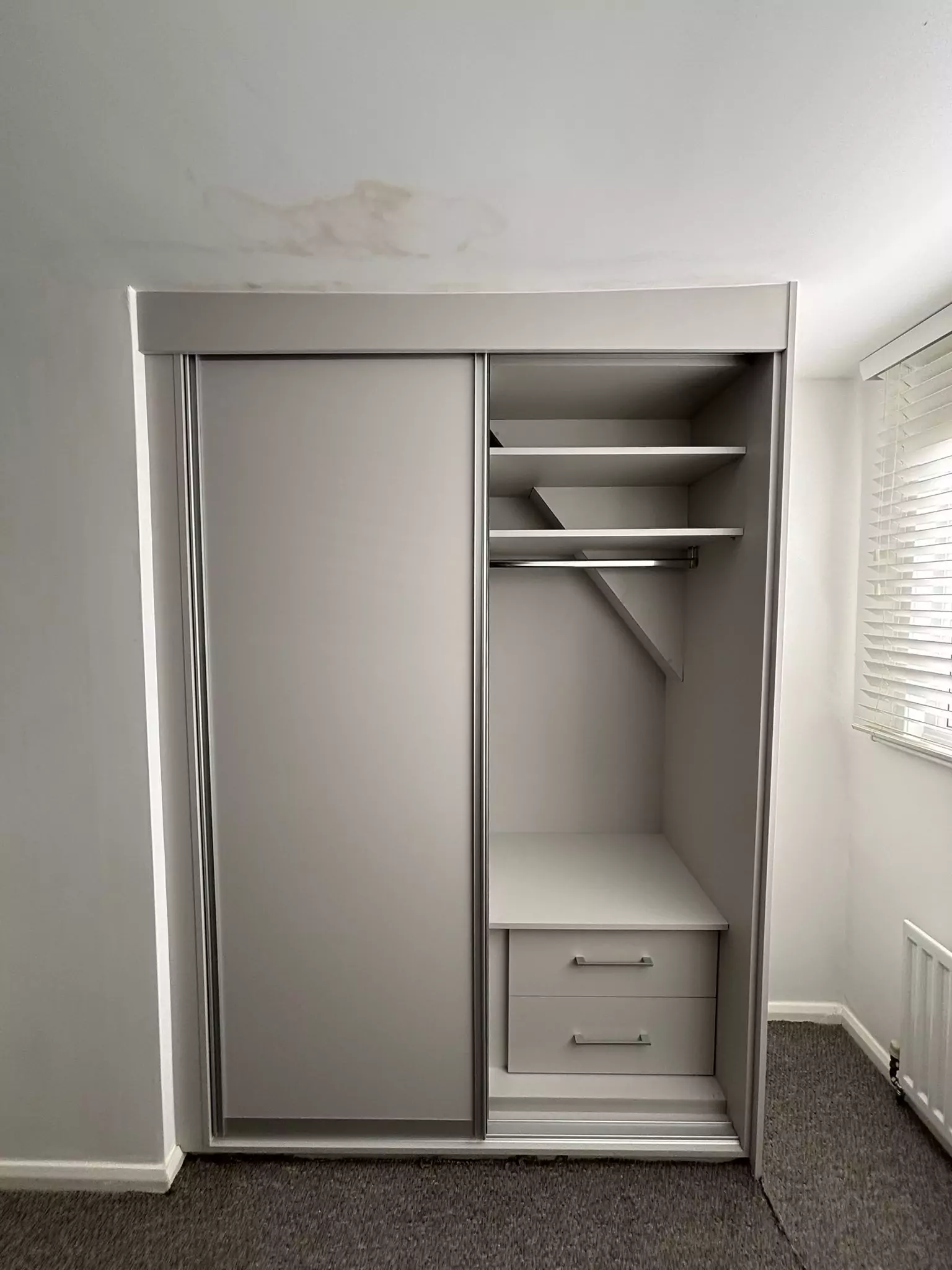 We manufacture full carcass sliding wardrobes because we believe that these simply look better and equally important, enhances the structural integrity of the build, that is why we give 10 years guarantee with every installation.