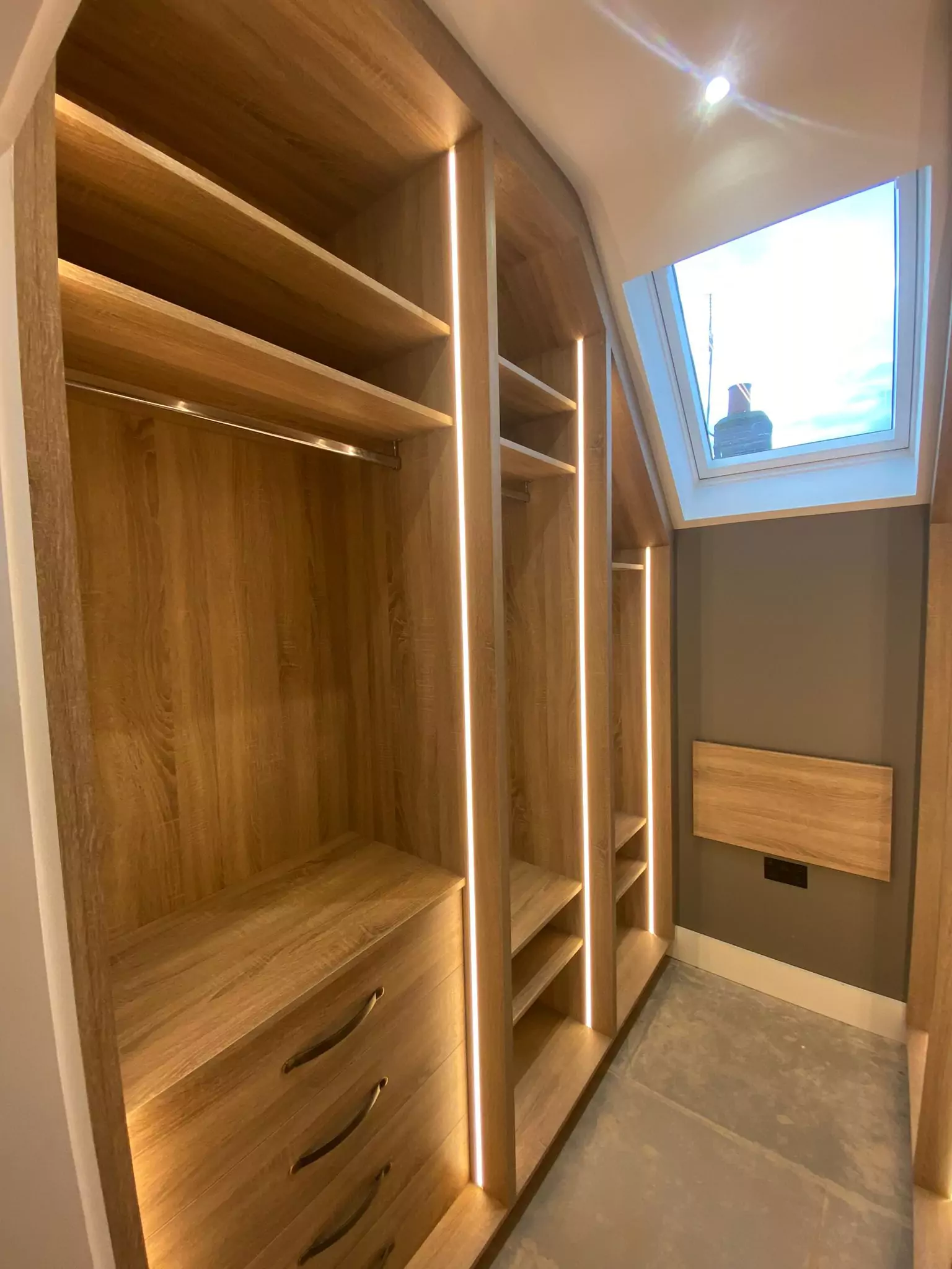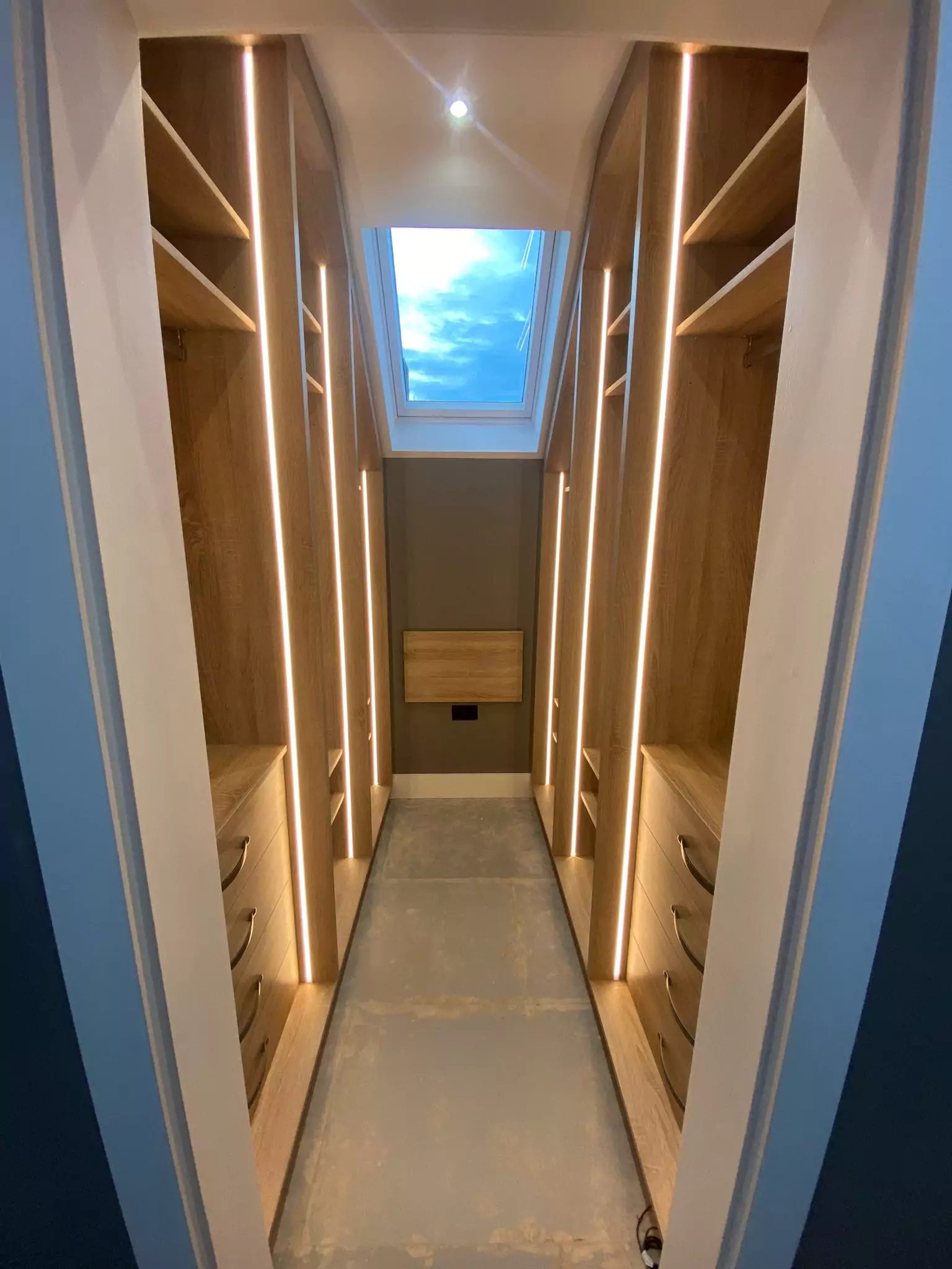 All of our wardrobes are made to measure in our own workshop, so no matter how complex your space is, we will be able to provide you with a beautiful walk-in wardrobe at an excellent price.